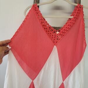 Shoreline gauzy sleeveless asymmetrical top fringe semi sheer lightweight blouse