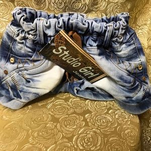 Short jeans made in Colombia blue you have no Ip or buttons it is spring on the waist it has two bags on the back with