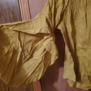 On or off shoulder blouse fancy arm sleeves. Mustard color. Brand new with tag