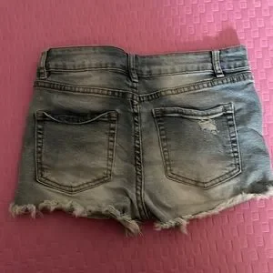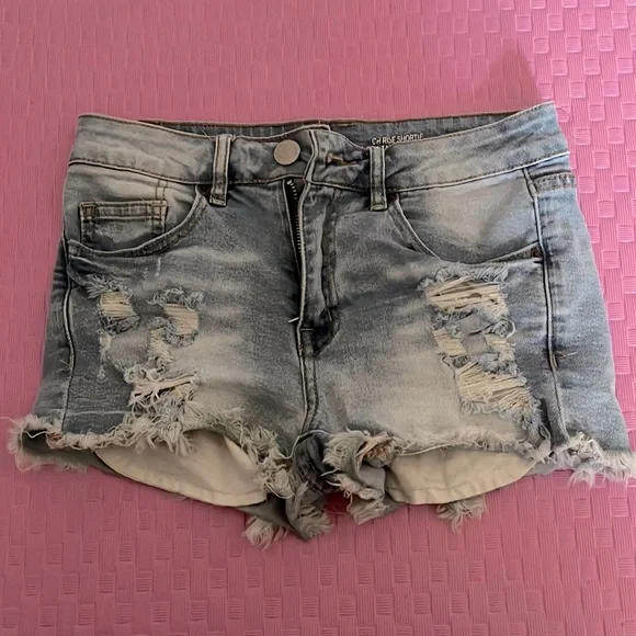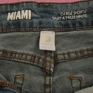 Size 3, high rise short tie short, ripped jean