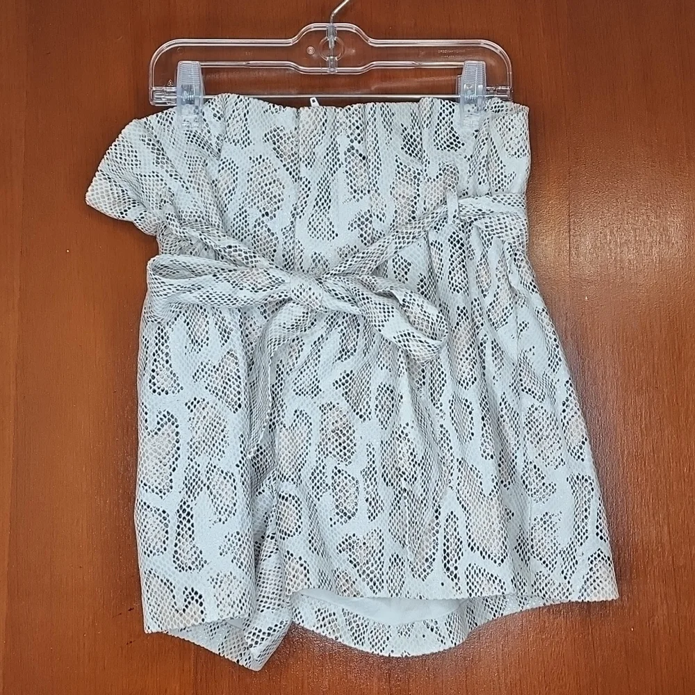 The fabric DOES NOT yield. Does not stretch. Style Mom Shorts. With Ruffle at the waist. It has two pockets in the front part.