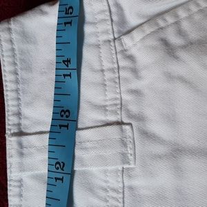 Clean white short plastic bottons, two pockets front and back.size 15 in junior.