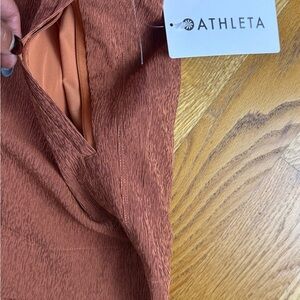 These brown athletic shorts from Athleta offer a relaxed fit with a comfortable elastic waistband, perfect for active days. The soft, textured fabric provides a cozy feel, making them an ideal choice for both workouts and casual wear.