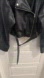 leather jacket features a classic motorcycle design with an asymmetrical front zipper and a notched lapel collar. The structured shoulders and belt detail at the hem add a modern touch to its timeless silhouette. Jacket was used once in great condition size is medium