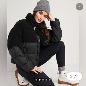 Short Black Sherpa Puffer Jacket Coat Large TALL