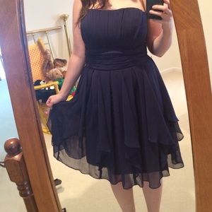 Reasonable offers only. Worn once at a wedding. Style F14169. Strapless chiffon dress with layered skirt. Has a zipper up the back, with a bra-like hook and eye closure for added support and to synch the waist. (See last picture) 🚫NO TRADES🚫