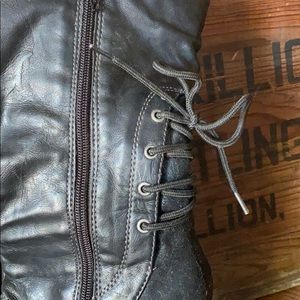 These Prima short boots have everything! Texture, lace up backs, a sturdy heel, and a side zip for easy on and off. Great consition. Not in original box.