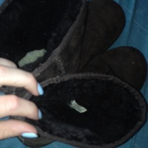 Short brown uggs, size 8 100% authentic. Right boot has a small hole from a stick. Other than that GREAT condition