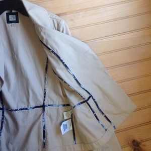 Short trench coat, hardly worn. Colorful interior trim detail. Thin, soft material. Great for spring or fall, and good with layers!