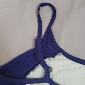 A-line style flowy sundress that doubles as a cute coverup for the beach. Pretty short so I don't recommend doing work in it but a beach day would be perfect! Colors are a navy blue, light blue, and a yellow-green! Front matches the back!
