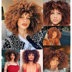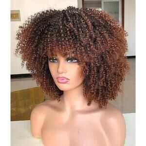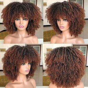 Short Curly Afro Wig With Bangs for Black Women Kinky Curly Hair Ombre Brown