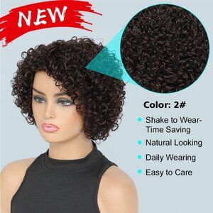 Short Curly Human Hair Wigs For Black Women Dark Brown Human Hair Curly Wigs Non