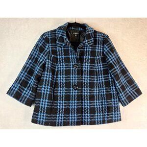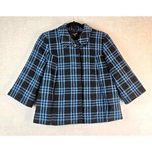 Short Cut Jacket Blazer 60s Style Blue Black Tweed Plaid PM Notations Career Wea