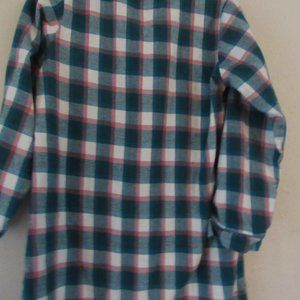 "Blush" Flannel night shirt. Green, red and white button down front easy care. #117