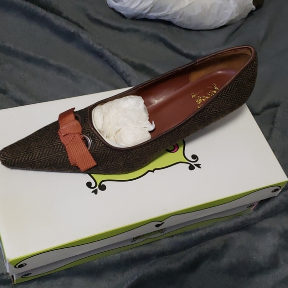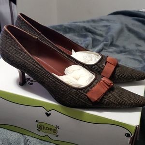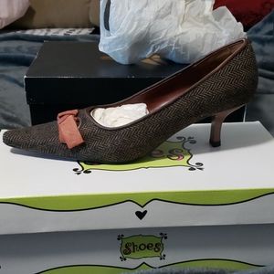 Brown patterned heels, never worn, brand new with original box