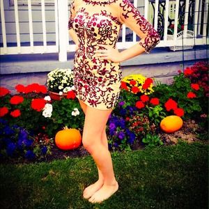Also id like everyone to know, since it is hard to see in the picture, the design on this dress is a plum color though sometimes it can be mistaken for burgundy.