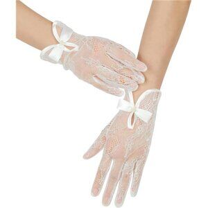 Short Lace Mesh Gloves Tulle Border with Pearls Wedding Opera Tea Party Gloves