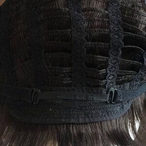 This wig has not been worn or tried on. Bangs have not been trimmed. Adjustable straps at back neck. Feel free to ask any questions.