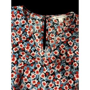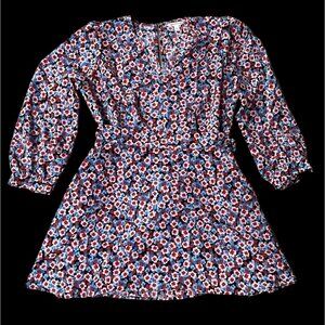 Short Mini Dress XL Daisy Flower Power Pockets Belt Red Blue V Neck Popsugar