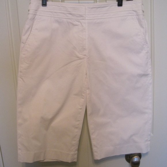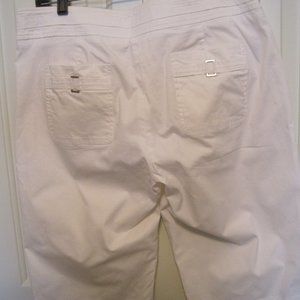 22.5" Length Inseam 13.5" Never worn, like new Cute buckles on back pockets and side of waist Longer style