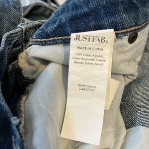 20 waist 13 rise 5.5 inseam. 100% cotton.