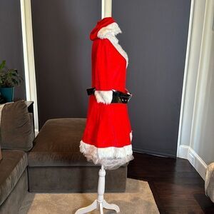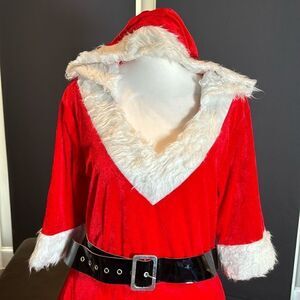 Short Red Hooded Dress White Faux Fur Trim Mrs Claus Santa Christmas Size L