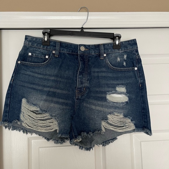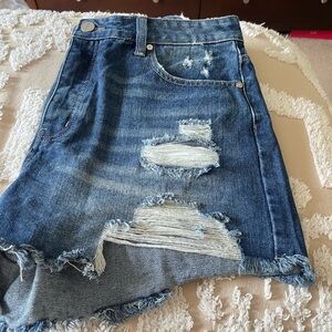 Ripped denim shorts, button closure. Like new. Size 13/30