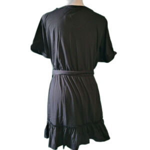 * Description: V-neck ruffle tunic dress with belt.