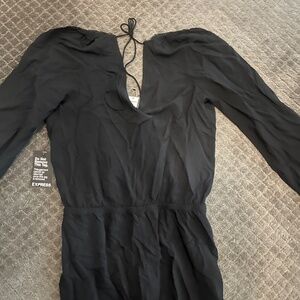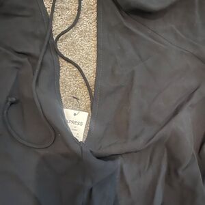 Short romper jumpsuit. Never worn, great condition, tags attached and interior tags in tact. Top area is wrap looking with lace edging. Material is: Body: 100% Rayon and Trim: 100% Nylon.