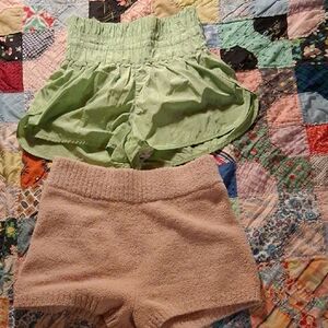 Free people and ugg shorts in size medium. Worn by 12 year old in size 10/12. Free people well loved, no staining, Ugg tried on only. Both run a tad small. I'm a good medium and sadly they are tight :( . **Have a black pair I'm throwing in as well.