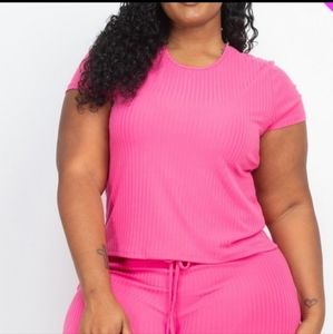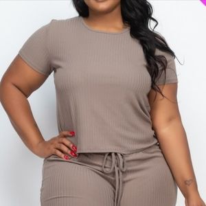 Ribbed Top and Shorts Set with a drawstring waist with strap tie