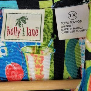 Short Sleeve 1X Top Button Tropical Mai Tai Beachy Resort Cruise Hawaii Vacation