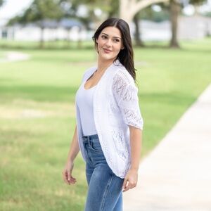Brand new, only worn once to model it for some photos. It is very lightweight, has a nice knit design, and is short sleeve. True to size small fit.