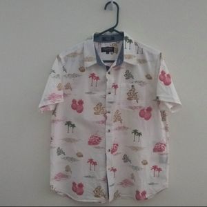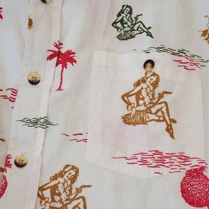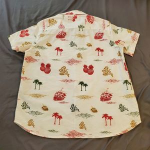Like new condition. This tropical short sleeve shirt is 100% cotton and features pineapples, palm trees, waves, and hula girls. Extra button stitched under placket. Price is firm due to Poshmark fees.