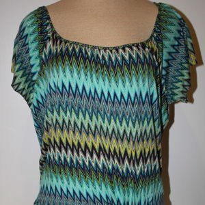 Short Sleeve Chevron Large Woman's Top w/ tie - Shades of Green / Short Sleeve