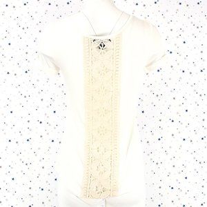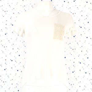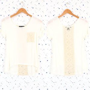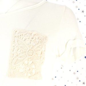 Short Sleeve Crochet Lace Detail Tee Ivory Cream