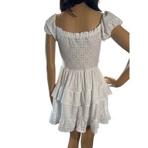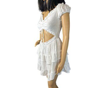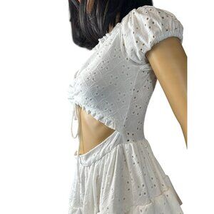 Short Sleeve Cutout Eyelet Skater Dress White Medium 2k5 Y2K Country Coastal rom