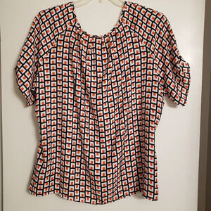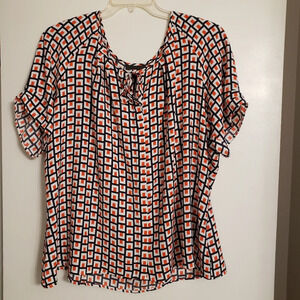 Short Sleeve Geometric Square Blouse Womens Plus 3X Worthington