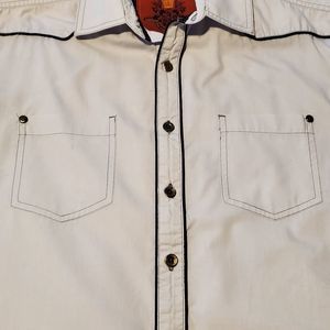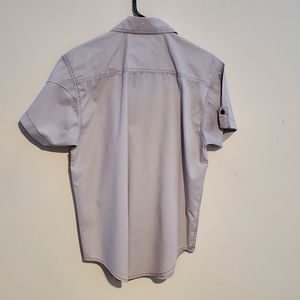 Like new condition. This casual short sleeve shirt is 55% cotton and 45% polyester. Extra button stitched under placket. Price is firm due to Poshmark fees.