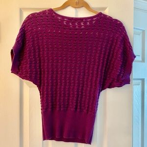 This cute, purple mesh sweater is lightweight and perfect for summer or fall! It has a form fitting waist and is super stylish.