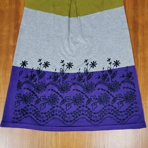Short Sleeve Olive Grey Purple Floral Color Block Knit Dress - XS