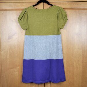 - Knit color block dress in olive, grey and purple
