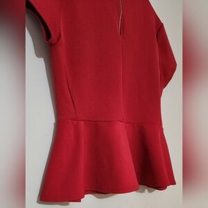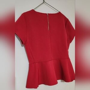 Short sleeve peplum tees are a cute and stylish top. This fitted shirt has an easy stretch for maximum comfort and a flared waist for a carefree look. zipper in the back.
