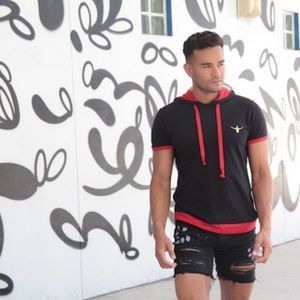 Embroidered Logo Short Sleeve Hoodie, Short Sleeve Red Black Hoodie Men Women Unisex, Soft Short Sleeve Red Black Blue Hoodie Men Women Unisex. Embroidered Logo Short Sleeve Hoodie by Souz Collection Embrace the Music t-shirts, hoodies, shorts collections strive to be the ultimate destination for fashion fans, catering mostly to the fashion forward consumer looking for a combination of sophistication, comfort and glamour through seasons trends mixed with classic, modern pieces.●