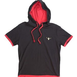 Short Sleeve Red Black Hoodie Men Women Unisex.