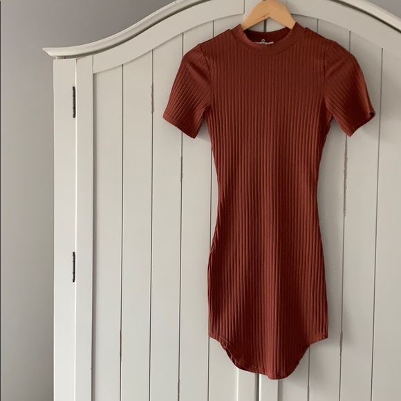 Simplistic & flattering. Short sleeved w some stretch. Color is like a dusty rose. Material is polyester & lastane. Approximately 34” in L. Worn once. I’m 5’9” for reference.