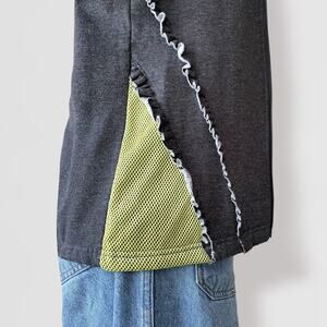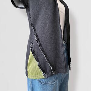 Short Sleeve Ruffle Hoodie Jacket Sz S Gray Lime Green Poof Excellence Mesh