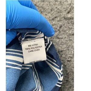 This navy and white striped dress is by New Glory