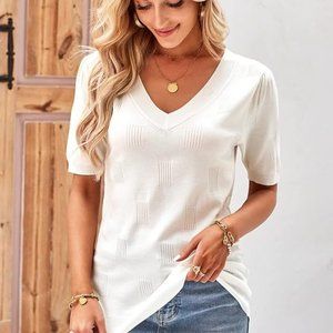 Short Sleeve Sweater V-Neck Lightweight Thin Knit Blouse