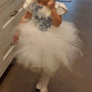 ivory and steel blue tutu dress. used as a flower girl dress perfect condition